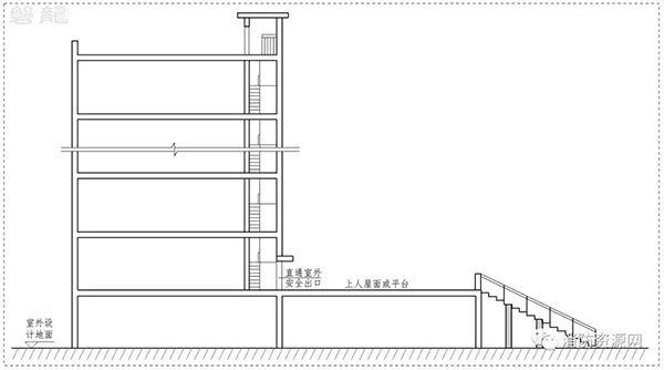作為室內安全區(qū)域的上人屋面或平臺,可作為樓層的安全疏散出口,其功能與通向疏散樓梯間的安全出口類似。
