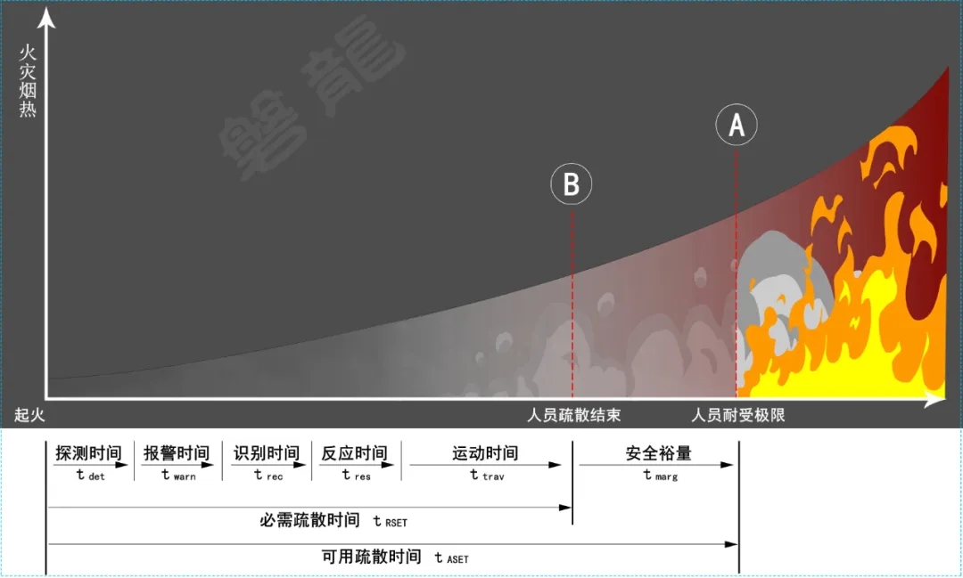 理解火災風險等級與階段疏散策略,需要明確兩個核心概念:必需疏散時間(RSET)與可用疏散時間(ASET)。