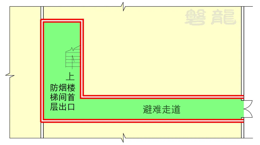 避難走道和防煙樓梯間的作用類似,疏散時人員只要進入避難走道或前室,就可視為進入室內(nèi)安全區(qū)域。