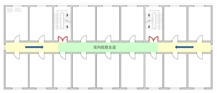 【圖示2】雙向疏散走道(中間雙向箭頭區(qū)域)