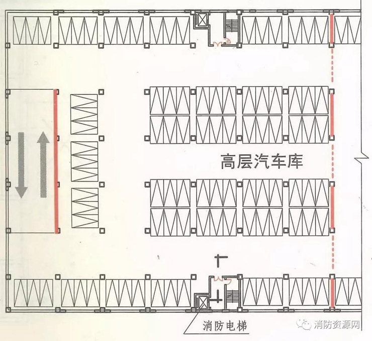 3、如對防火分隔部位的防火卷簾應(yīng)用長度進(jìn)行了限制,那么對于配建分散充電設(shè)施的汽車庫,將更難處置。