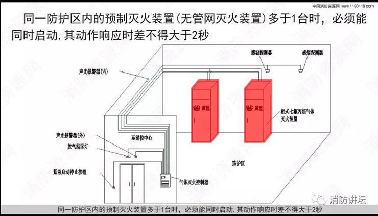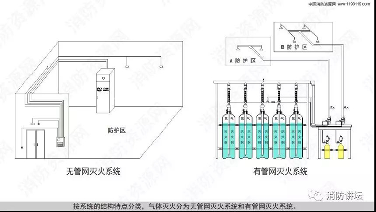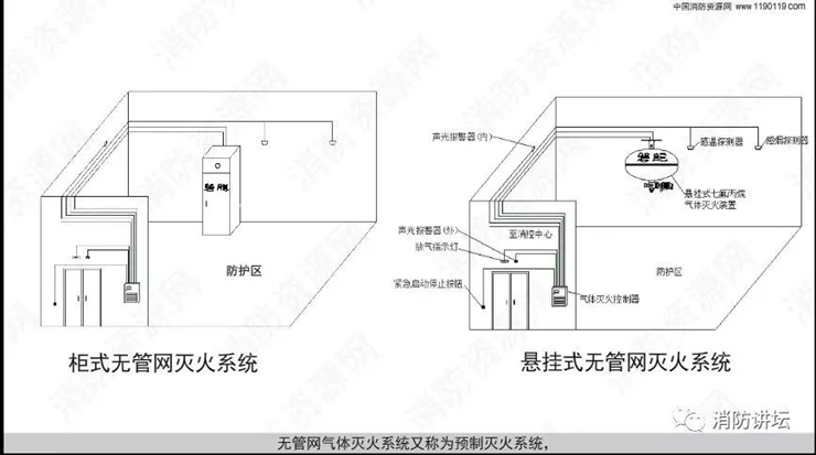 氣體滅火分為有管網(wǎng)滅火系統(tǒng)和無管網(wǎng)滅火系統(tǒng)! 無管網(wǎng)滅火系統(tǒng)又稱為預(yù)制滅火系統(tǒng),分為懸掛式、柜式滅火系統(tǒng),概念糾結(jié),這里一次性講清楚了
