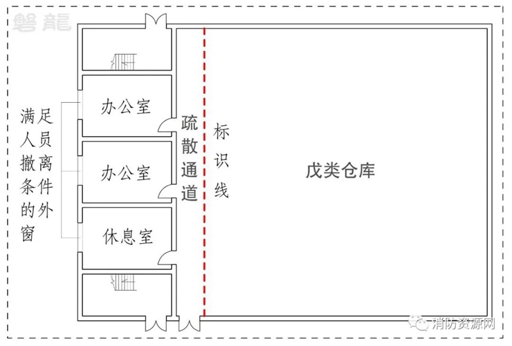 辦公休息室與生產(chǎn)儲存場所屬于不同的建筑分類和功能屬性,當(dāng)辦公休息室bi需設(shè)置于生產(chǎn)儲存場所時,有必要通過普通隔墻(房間隔墻或疏散走道隔墻)分為相對獨立的區(qū)域,混設(shè)不應(yīng)許可,且辦公室和休息室不應(yīng)通過生產(chǎn)儲存場所疏散。